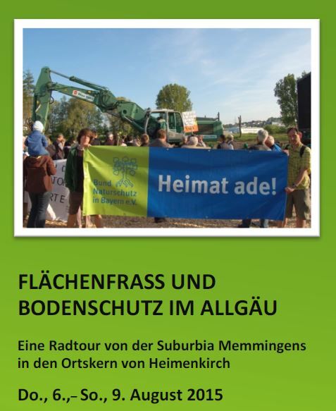 Das NEZ (Naturerlebniszentrum Allgäu) organisiert vom 6. - 9. August 2015 (= internationales Jahr des Bodens) eine Radtour von Memmingen nach Heimenkirch. Eine Station wird auch Bad Grönenbach (6. August) sein, wo über den Bürgerentscheid gegen einen EDEKA Markt informiert wird und am Abend ein Vortrag "Bodenfunktionen und Bodengefährdungen" stattfindet.