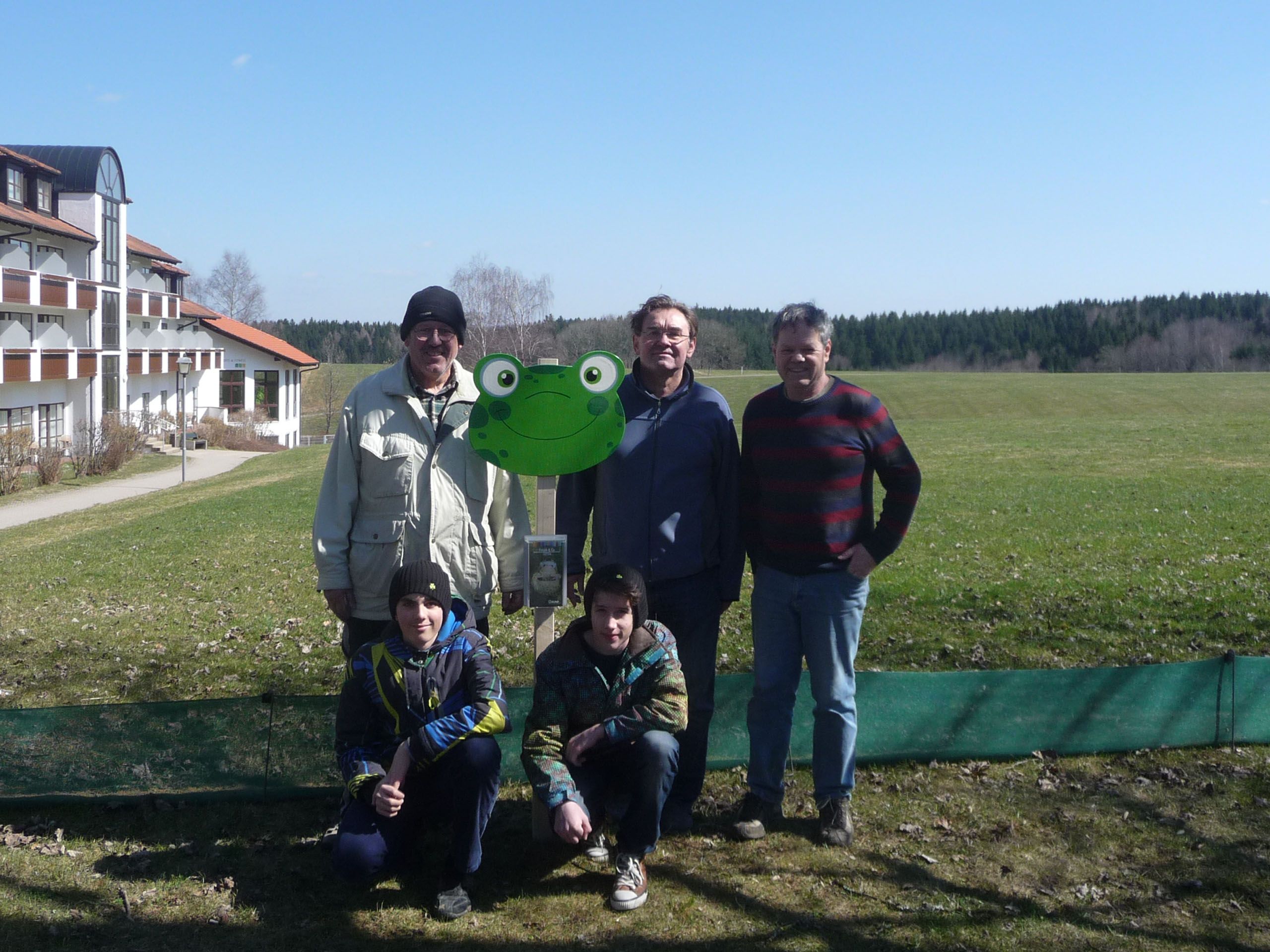 Die Zaunbarriere zum Schutz der Kröten entlang der Kreisstraße wurde diese Woche vom Kreisbauhof erstellt. Die Ortsgruppe muss aber die Umzäunung des Parkplatzes, gegenüber der Heliosklinik, selbst organisieren. Zusätzlich wurden noch Infotafeln mit Kästchen für Flyer aufgestellt um Einheimische sowie Besucher von Bad Grönenbach über die Amphibien im Allgemeinen und deren Wanderung im Speziellen zu informieren.