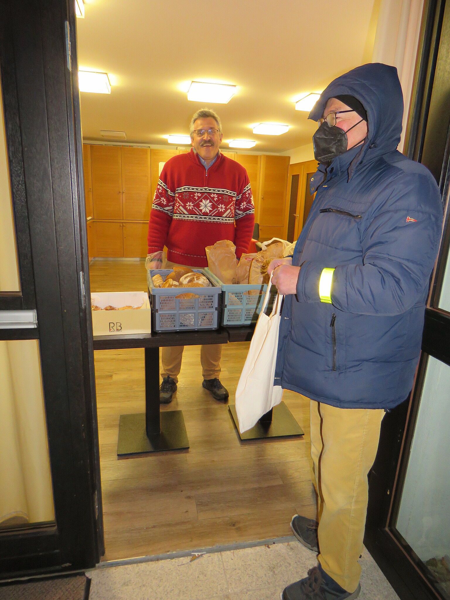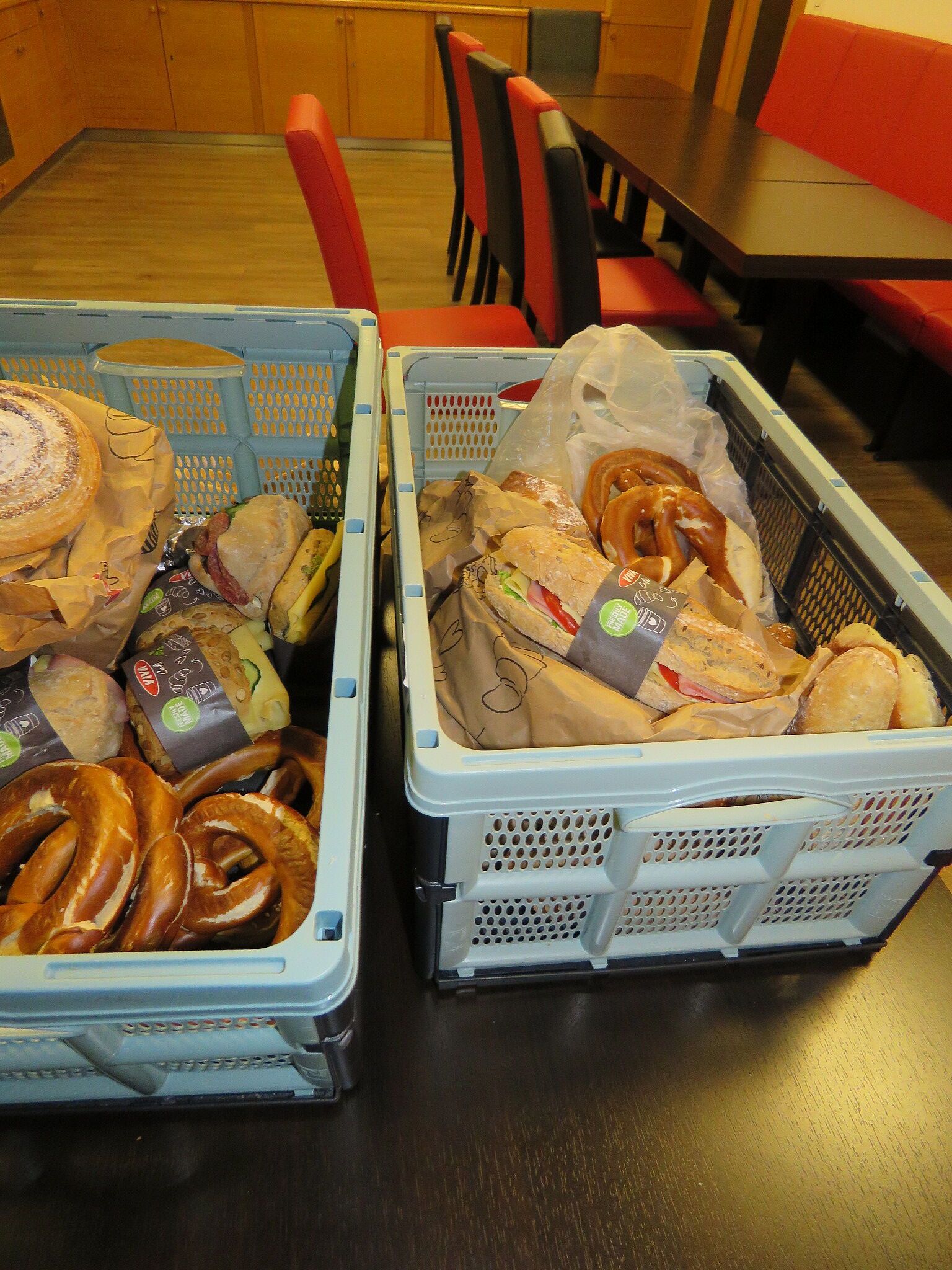So vereinbarte Franz Egger mit ihnen, dass er jeden Montag zum Ladenschluss hin bei ihnen vorbeischaut und gut erhaltene Lebensmittel, die sonst entsorgt werden müssten, mitnehmen darf. Darunter befinden sich hauptsächlich Backwaren, wie Brot, Semmeln, Brezen, aber auch Süßigkeiten wie Muffins, Bienenstich und Donuts oder Sandwitches, also ein recht reichhaltiges Angebot. Dieses bringt er danach postwendend zum Pfarrzentrum in der Gartenstadt, wo die Lebensmittel ab 21 Uhr kostenlos abgegeben werden.
