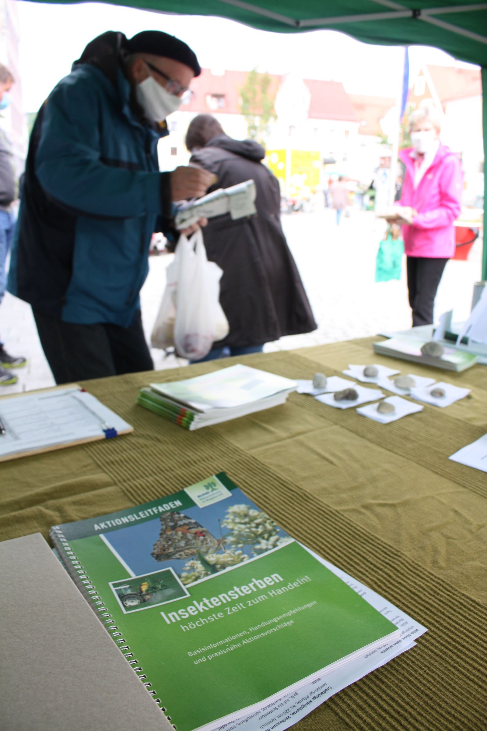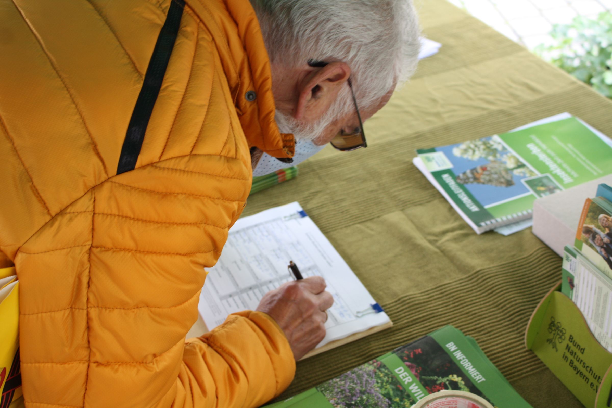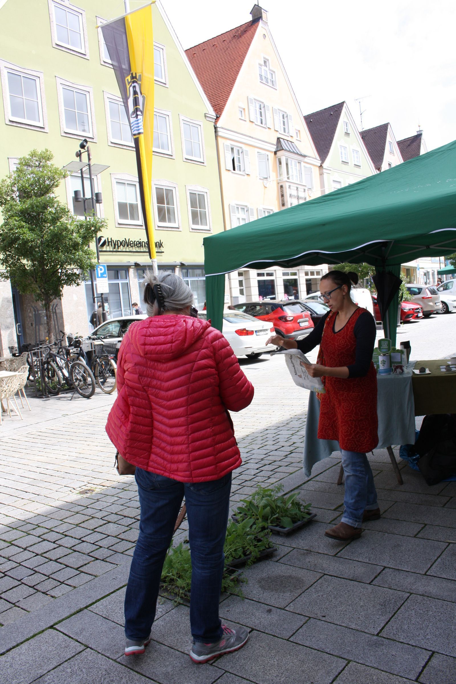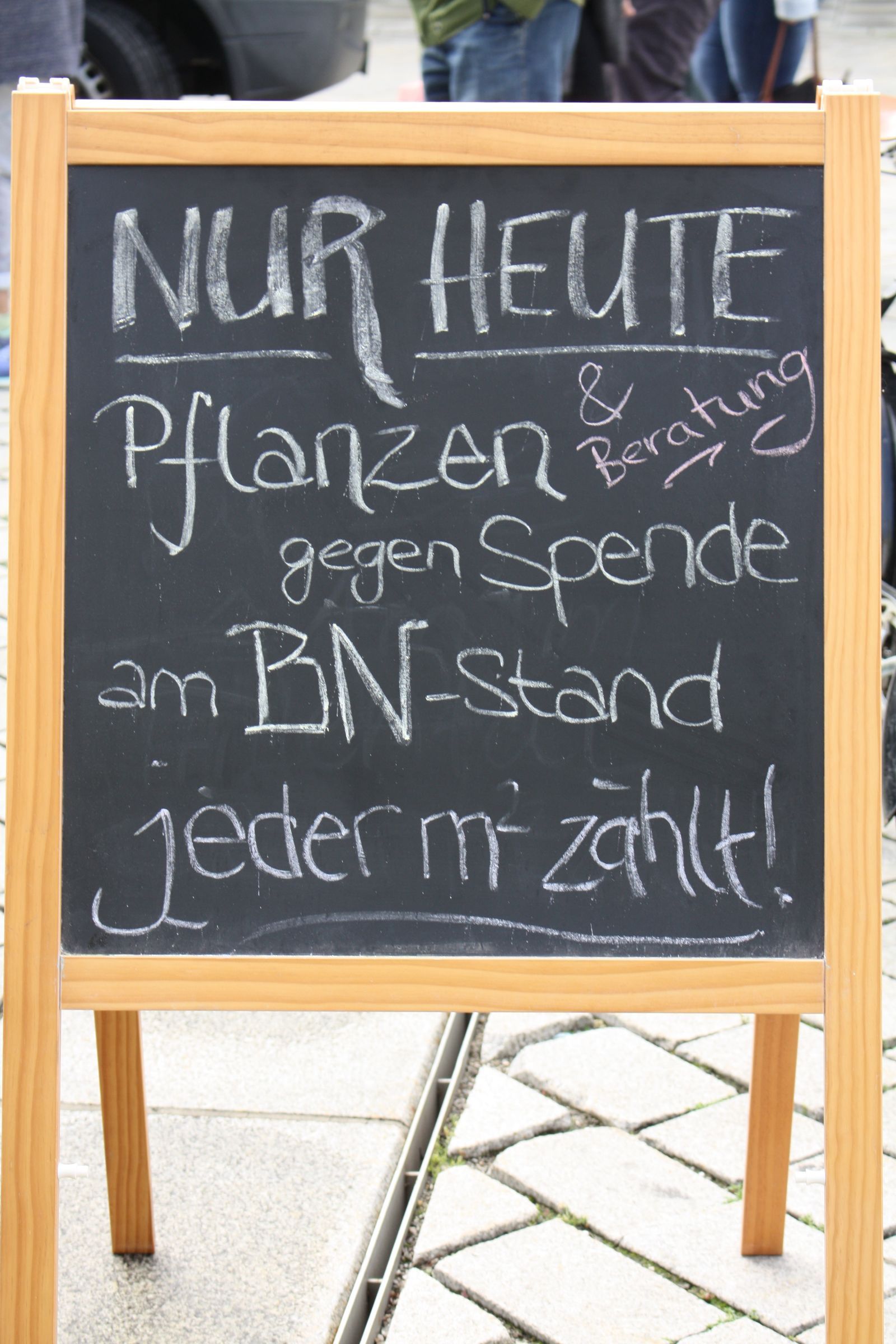 Sonne, Regen, ein guter Standort und viele Menschen, die sich kümmern: Das, was auch für Pflanzen und Tiere wichtig ist, hatte der BUND Naturschutz-Infostand am Samstag vormittag zu bieten. Hier konnten engagierte Gärtner:innen bei wechselhaften Bedingungen nicht nur Insektennahrung (in Form von Jungpflanzen) mitnehmen, sondern auch ihre Stimme für den Erhalt des Holzbaur-Gartens und seinen prächtigen Bäumen hinterlassen.