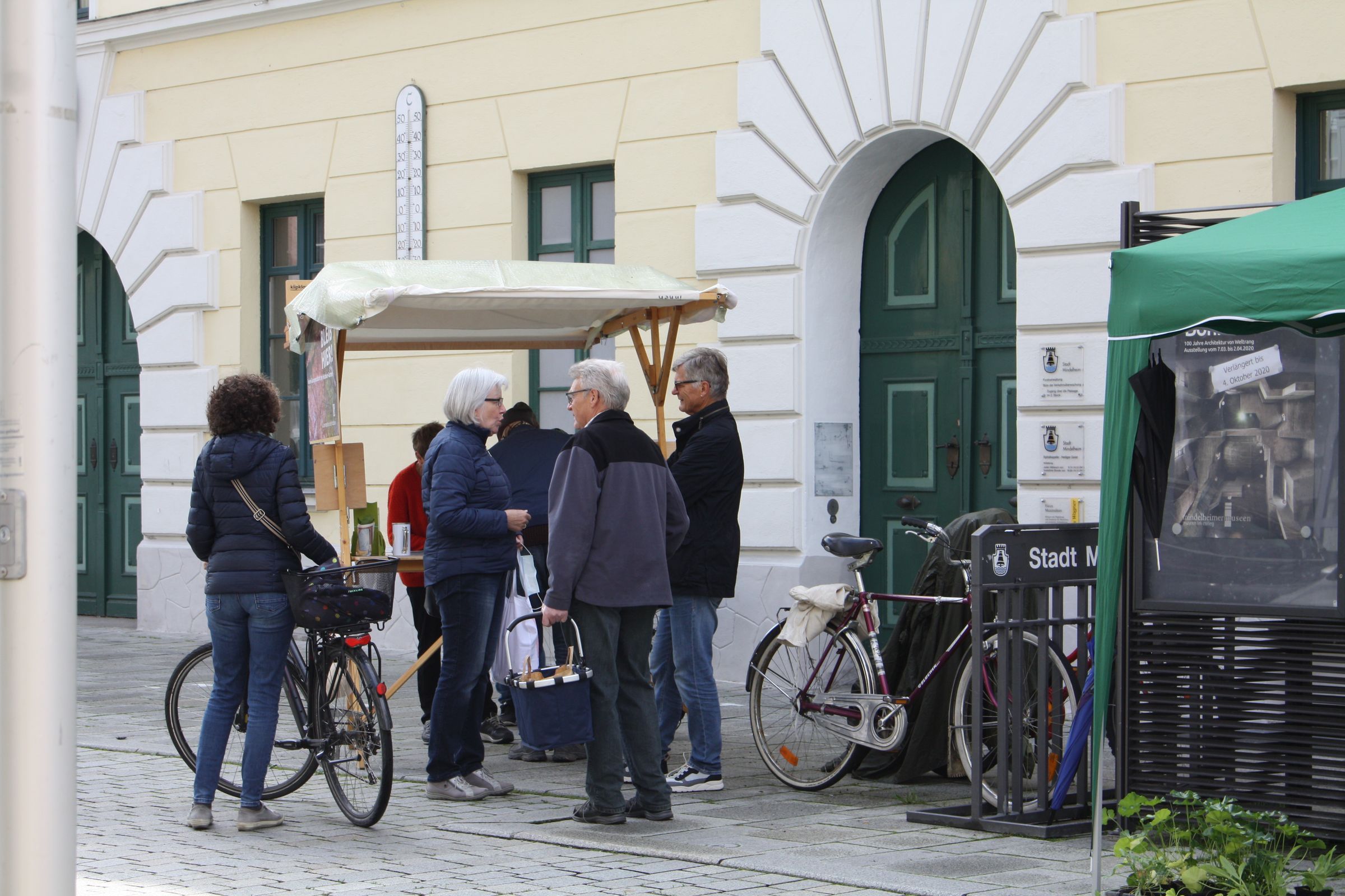 Auf der anderen Seite wurden tiefgreifende Diskussionen über das Holzbaur-Grundstück, die Mobilitätswende und die Belebung der Innenstadt geführt. Denn nicht einmal 200 m vom Infostand entfernt könnte schon bald der historische Stadtgraben von einer weiteren Tiefgaragenzufahrt durchschnitten und dafür zwei mächtige Blutbuchen gefällt werden.