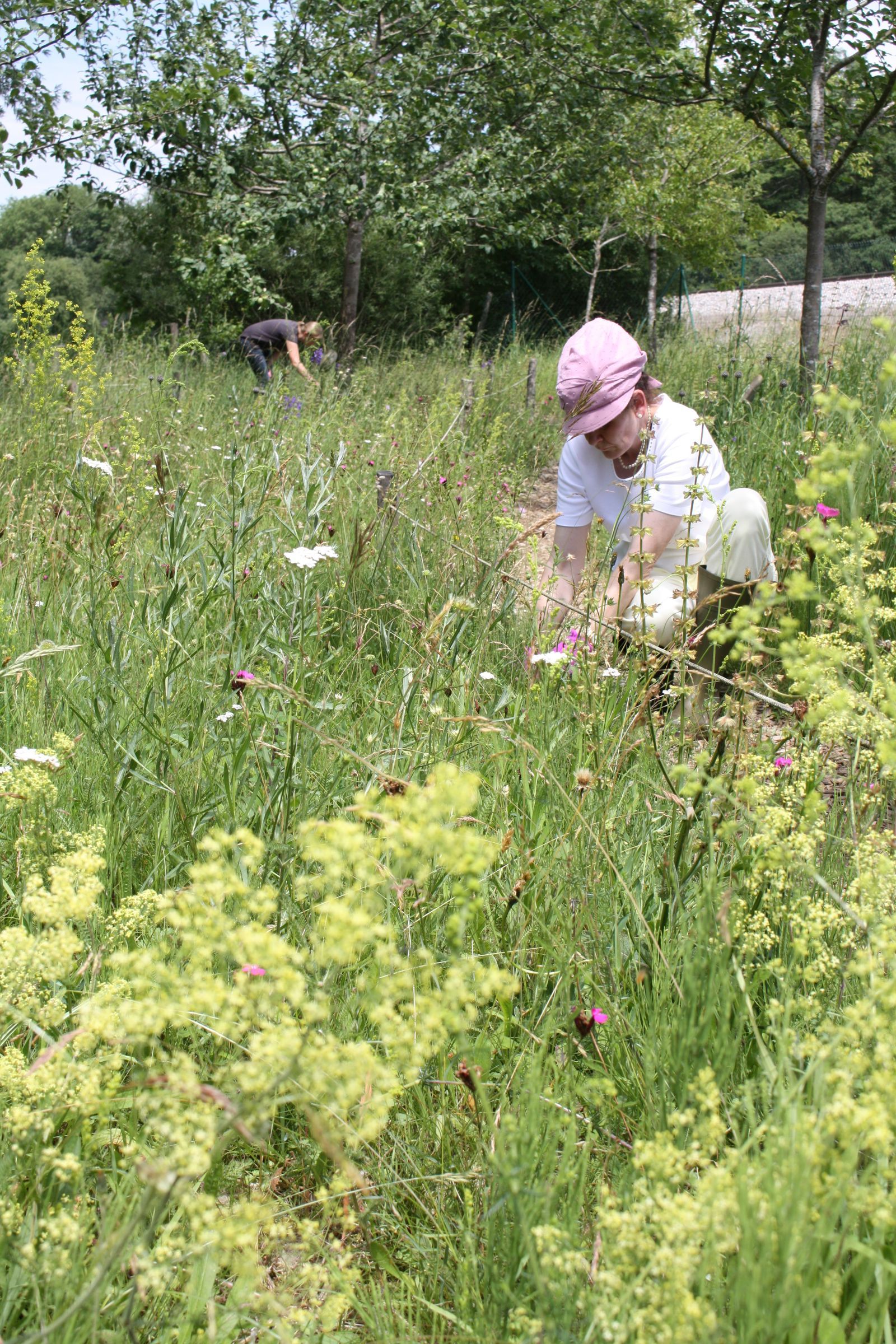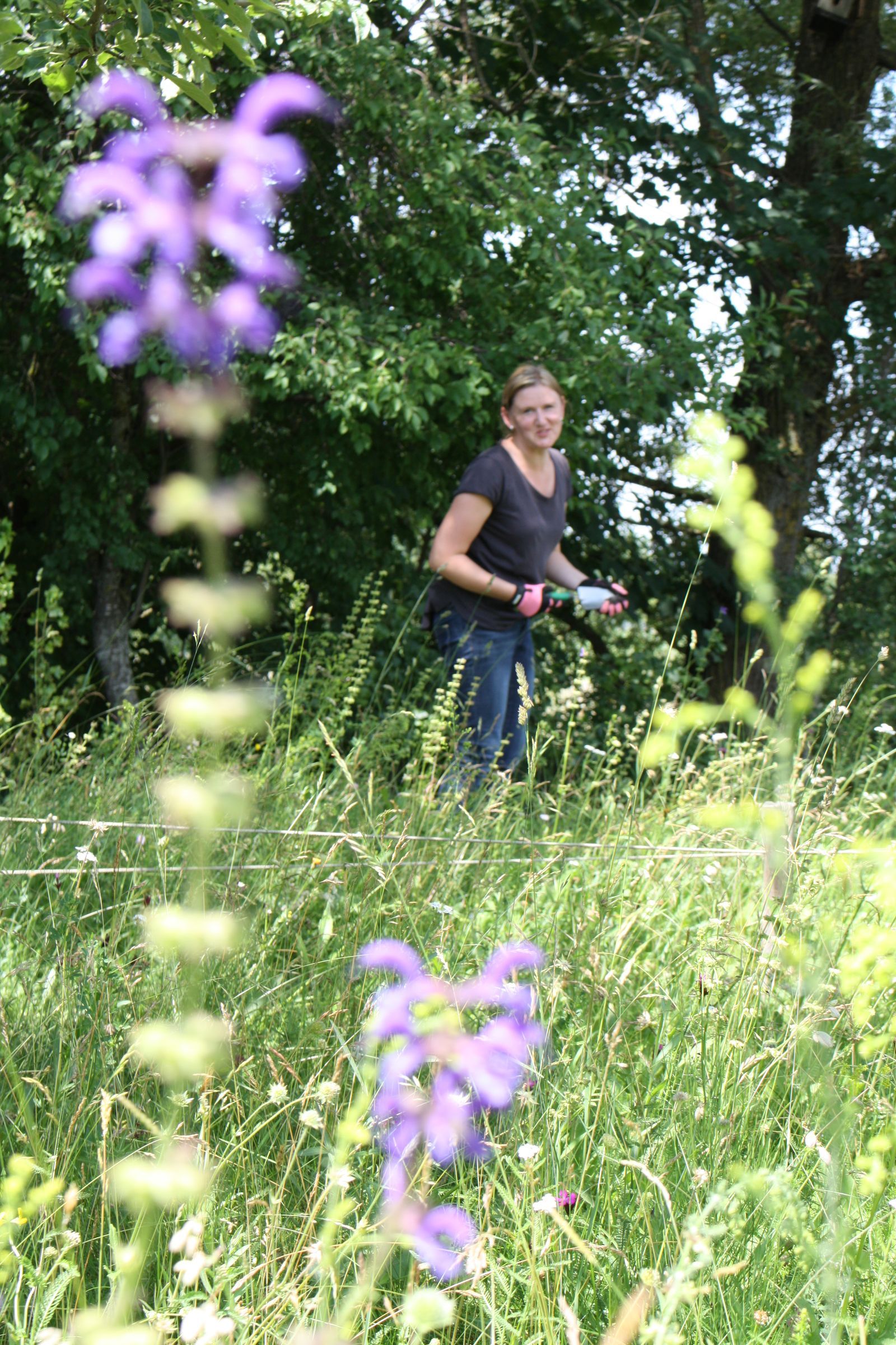 Andreas Mayer fühlte sich in der Zeit zurückversetzt, konnte er doch endlich wieder mal einen Rasenmäher (entlang der Wege) laufen lassen. Diese Arbeit, für so viele ein wöchentliches Ritual, ist im Garten seiner Familie, der gänzlich der Artenvielfalt gewidmet ist, seit geraumen Jahren nicht mehr notwendig.