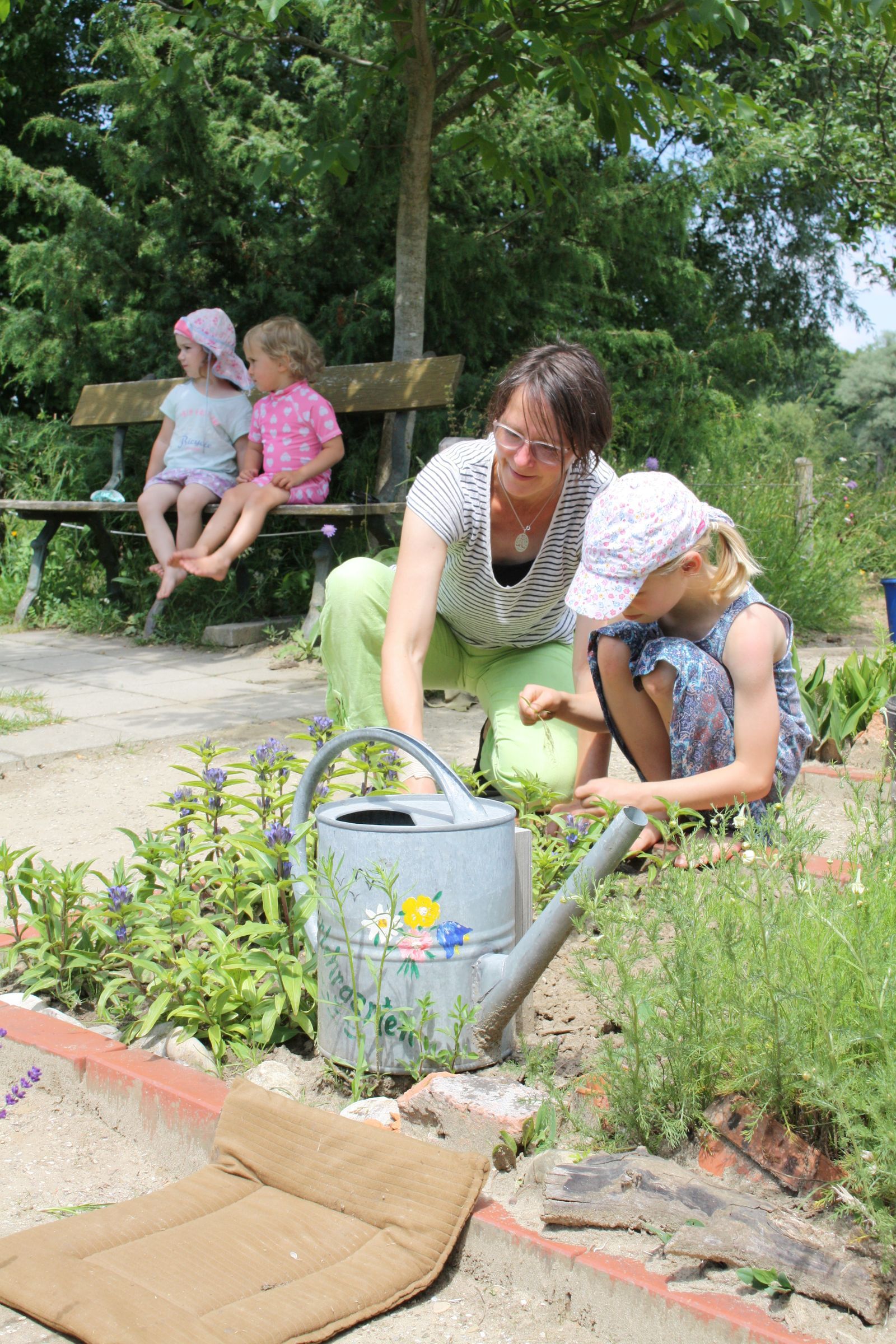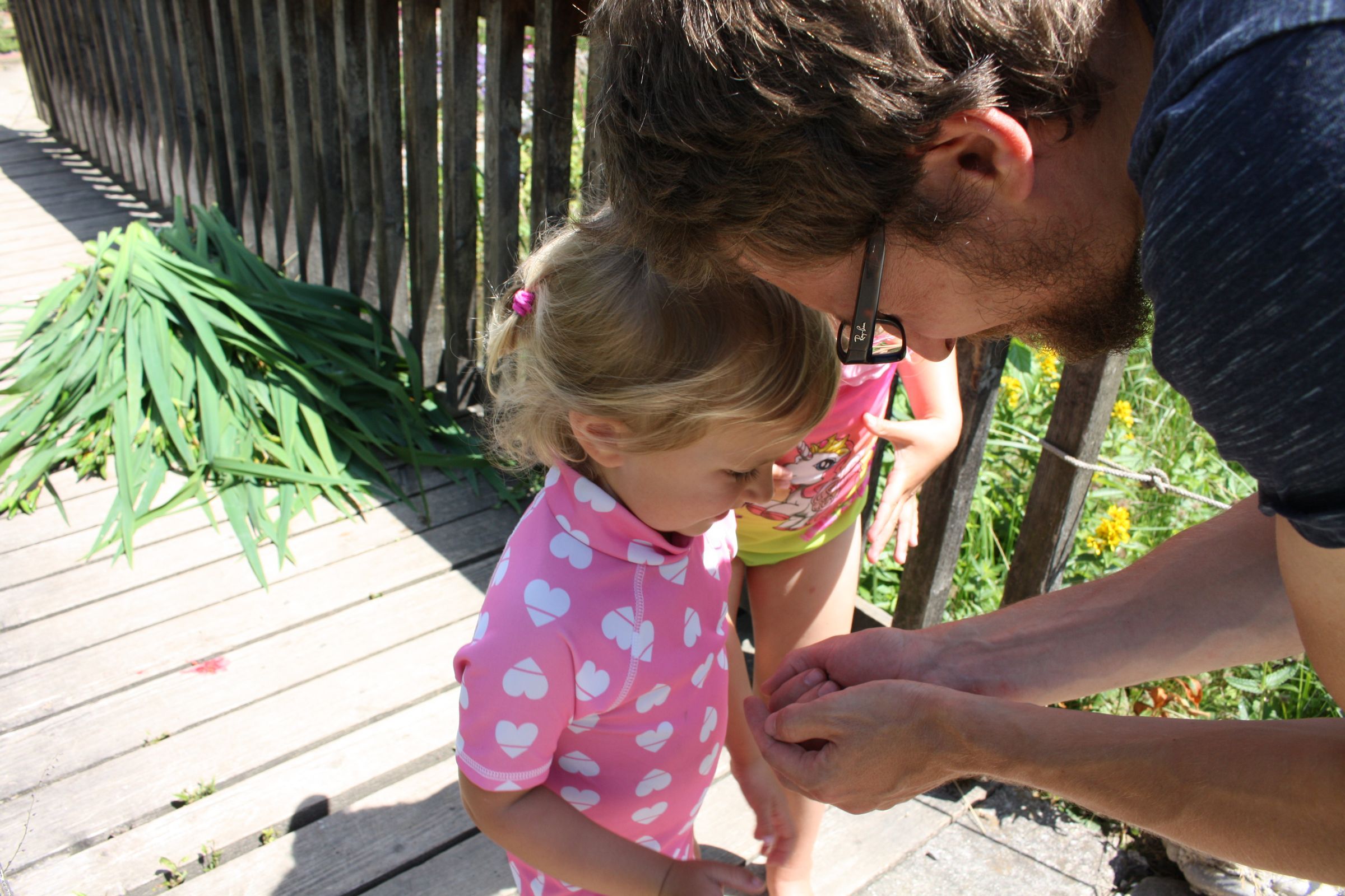 Auch die Kleinsten halfen z.B. Beikräuter zu jäten, um die Artenvielfalt auf den Flächen zu bewahren. Dabei wurden sie immer wieder von der einen oder anderen Eidechse überrascht, die sich über das Geschehen wunderte.